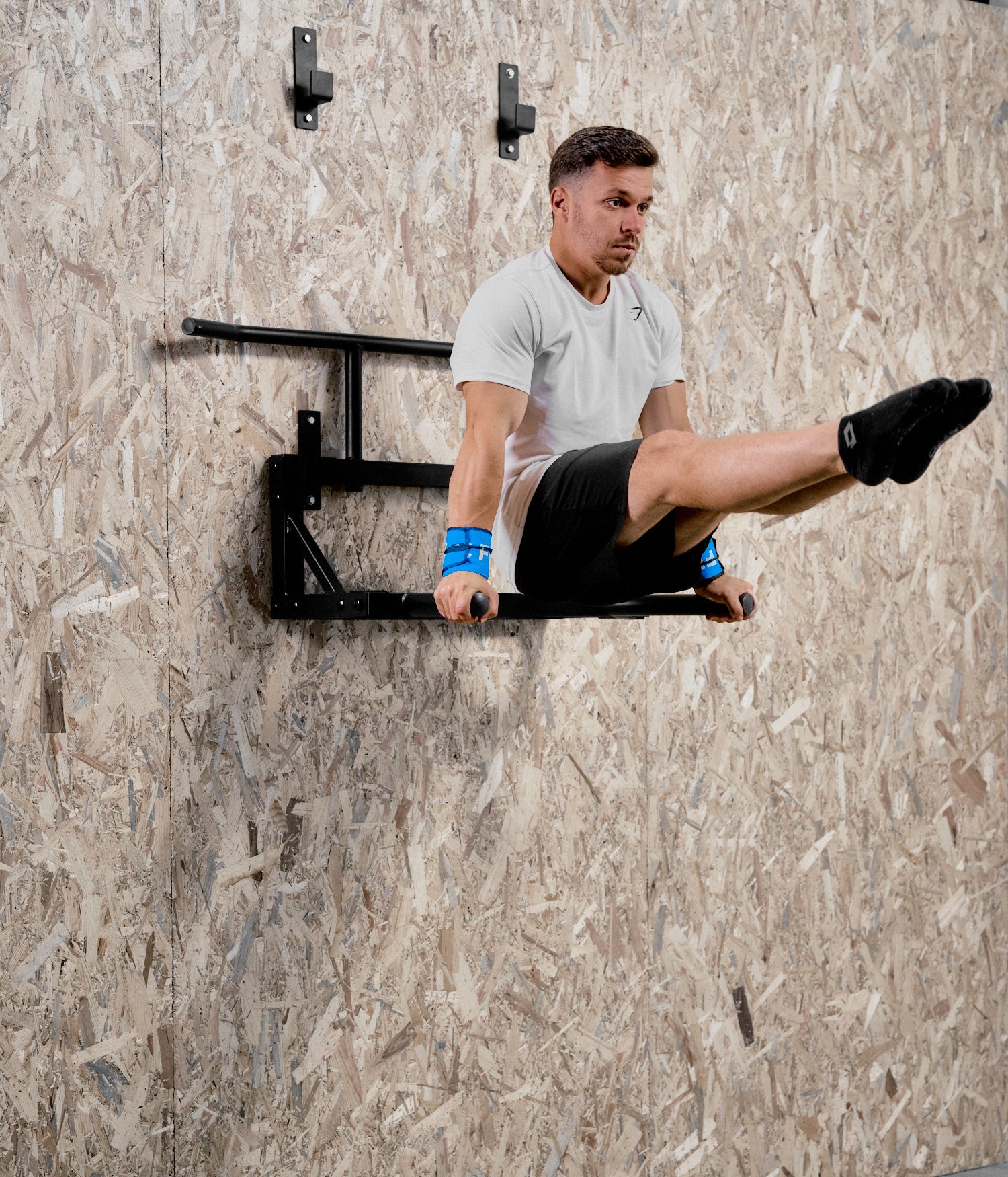 This exercise can also be performed on the wall-mounted pull-up & dip bar or the free-standing bar.