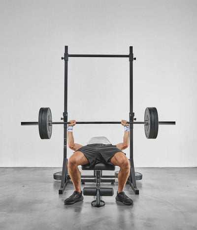 ➡️ Adjust the height of the bar supports and switch from bench press to incline bench press or even decline bench press in seconds.