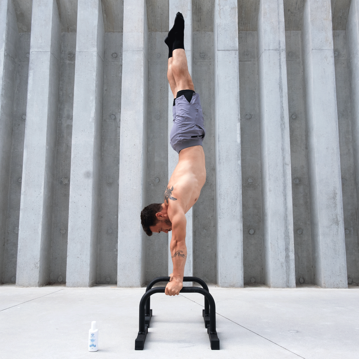 2. Saisissez fermement les barres avec les deux mains et hissez-vous en position de handstand.